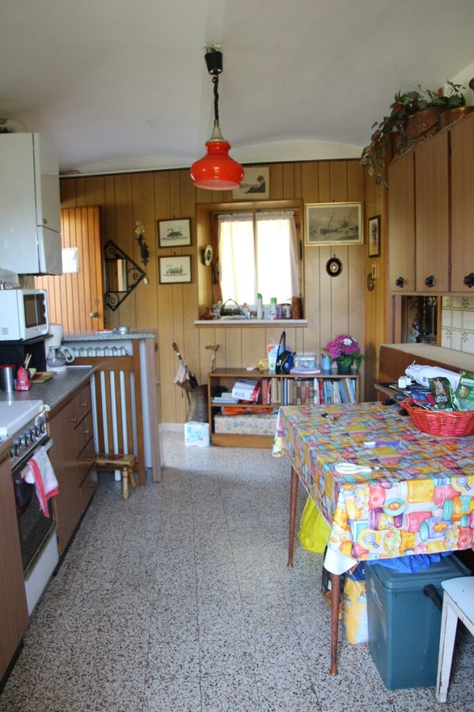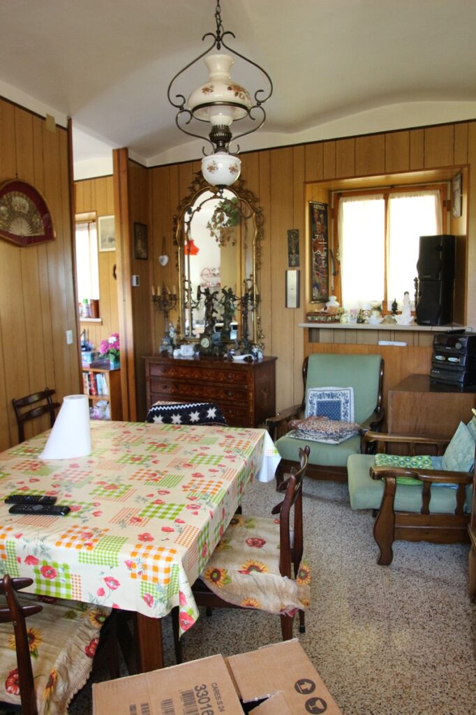 L’immobile è completato dal piano terra/semi-interrato, composto da locale sgombero ad uso taverna, locale cucina, cantina e locale deposito ad uso rimessaggio per attrezzi.