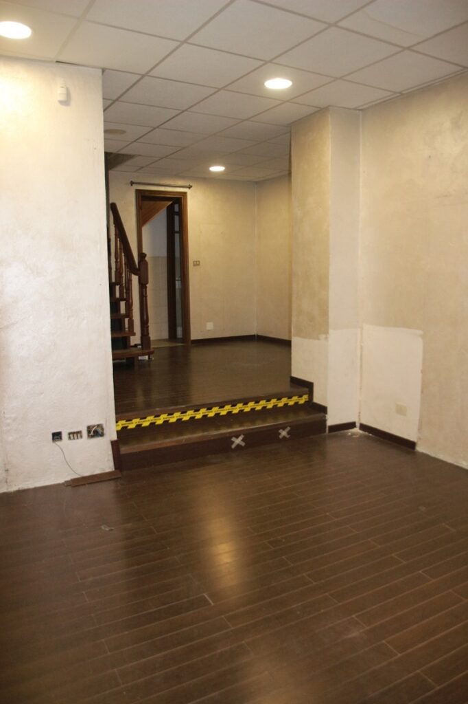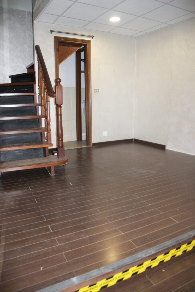 Il piano terra si compone di un ampio open-space con relativo bagno e, vetrina che si affaccia direttamente sulla via Umberto.