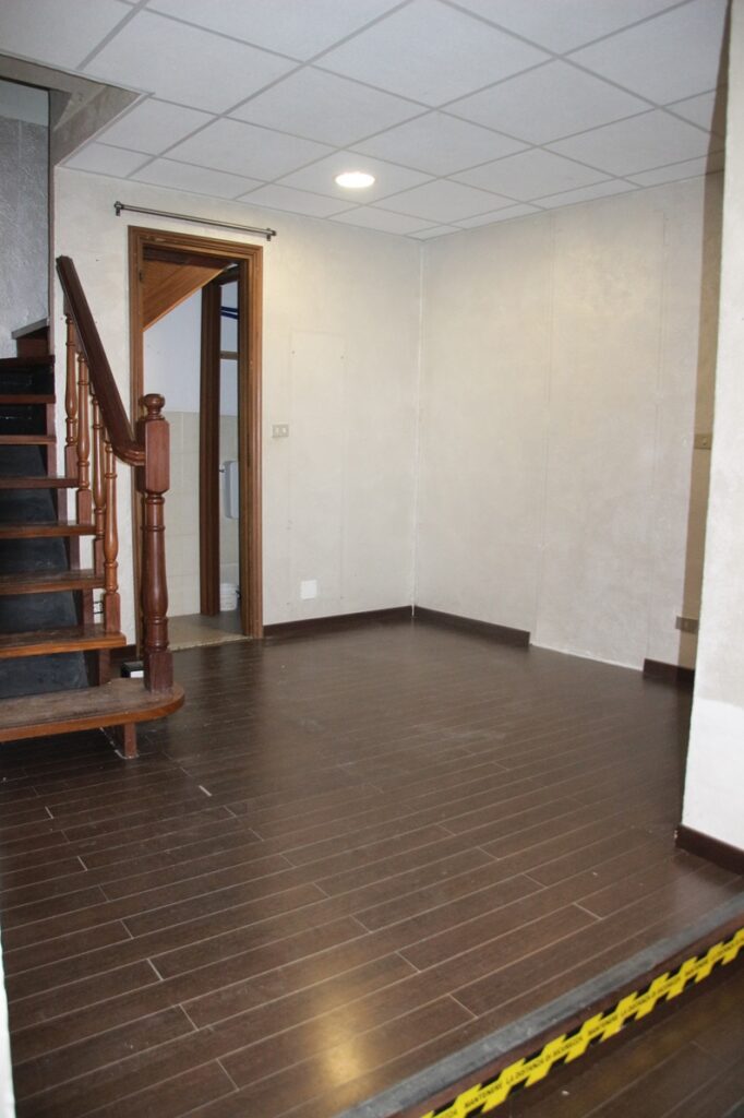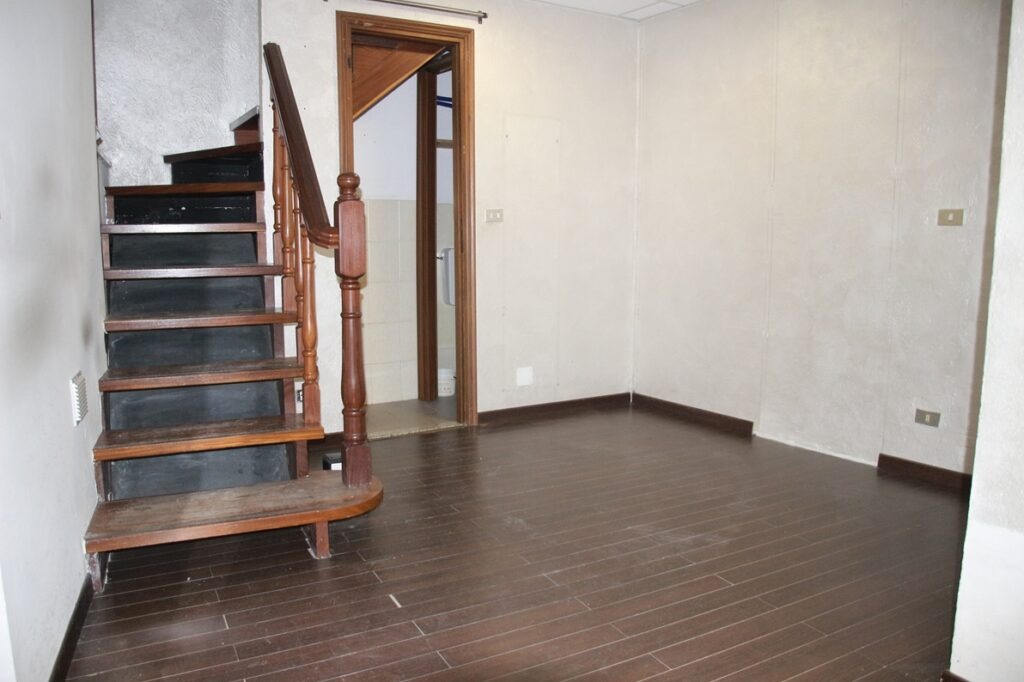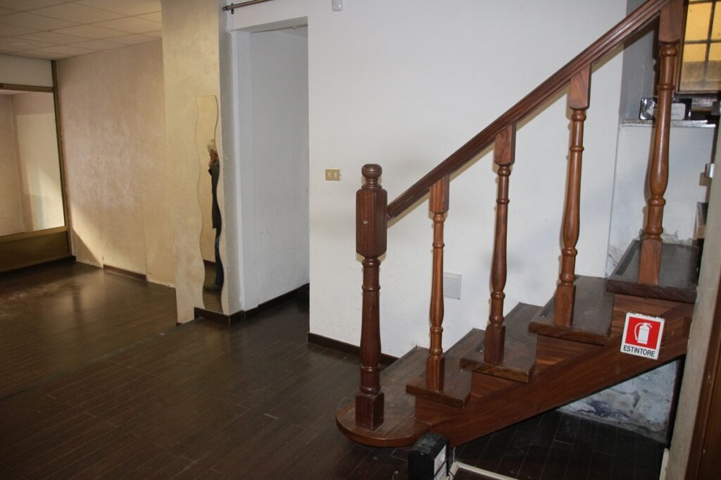 I due piani del locale commerciale sono collegati tra loro tramite scala interna in legno.