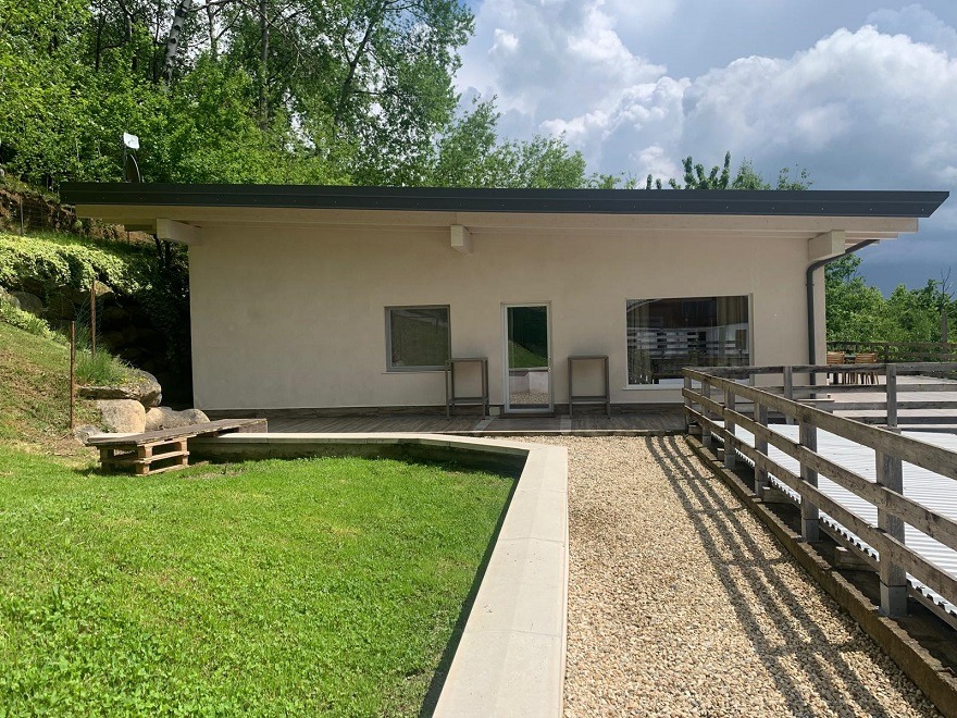 La villa edificata nel 2015 è stata realizzata in bioedilizia, con struttura in x-lam, cappotto traspirante con pannelli da 14 cm in sughero e tetto in legno ventilato con copertura zincata coibentata.
