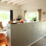Tutto il piano presenta il soffitto con travi a vista in legno lamellare.